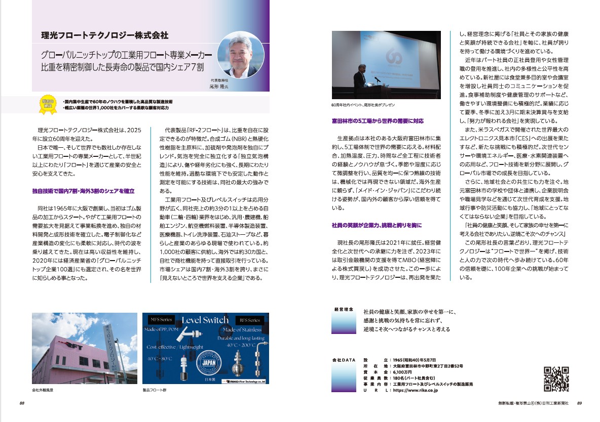 【掲載のお知らせ】「なくてはならない関西の長寿企業2026」 2026.02.03 このたび当社は、日刊工業新聞社西日本支社発行の「なくてはならない関西の長寿企業2026」 に掲載されました。 掲載内容につきましては、下記画像をご覧ください。 ※掲載画像は「なくてはならない関西の長寿企業2026」(日刊工業新聞社西日本支社発行)からの転載です。
