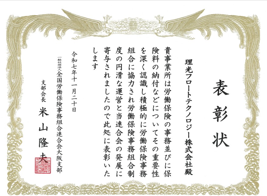 令和7年度 優良労働保険事務組合等表彰式において、弊社が表彰されました 2025.11.26 11月20日に開催された「令和7年度 優良労働保険事務組合等表彰式」において、弊社が表彰されました。引き続き、より良い職場づくりに努めてまいります。